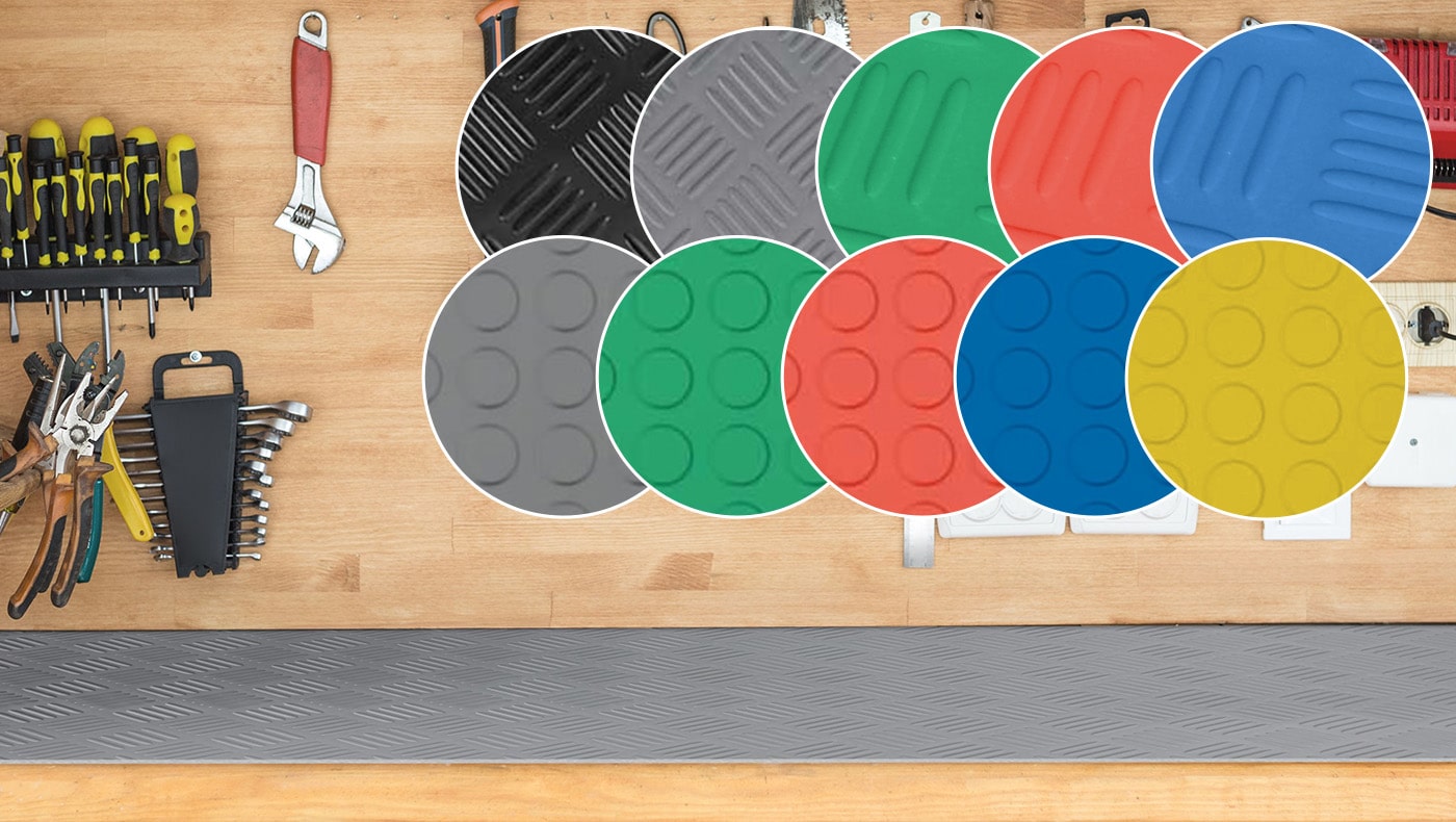 - Riffelblech: Klassische Antirutsch-Funktion für alle Böden, auch bei Nässe. Auf vielfrequentierten Laufwegen, z.B. in Produktion und Lager, eine optimale Wahl.