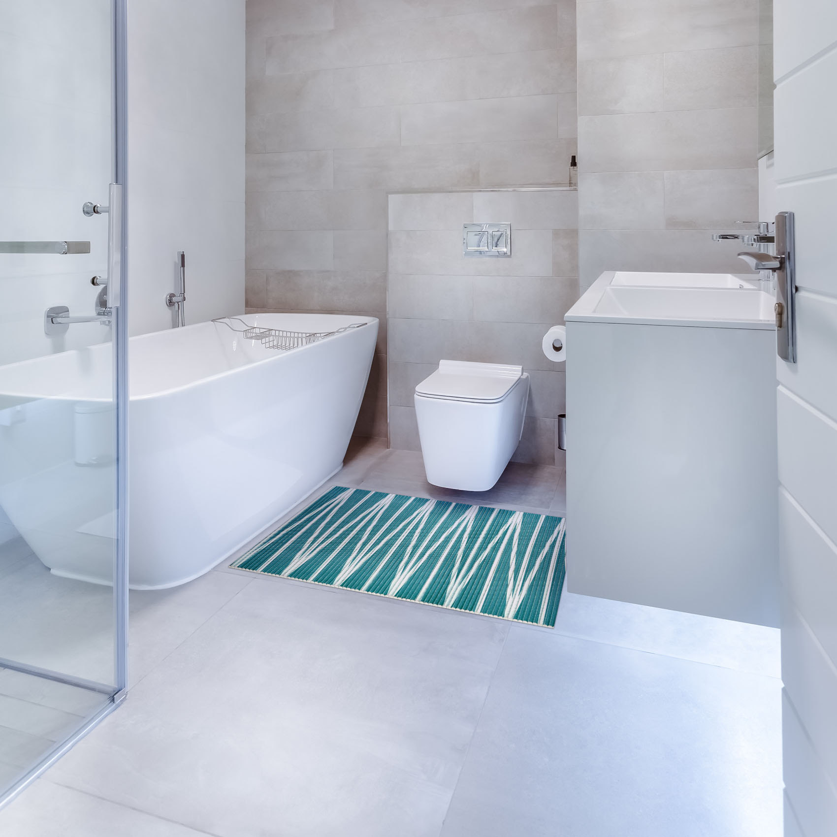 Badematte Badeteppich türkis Linien Weichschaummatte von der Rolle Badvorleger