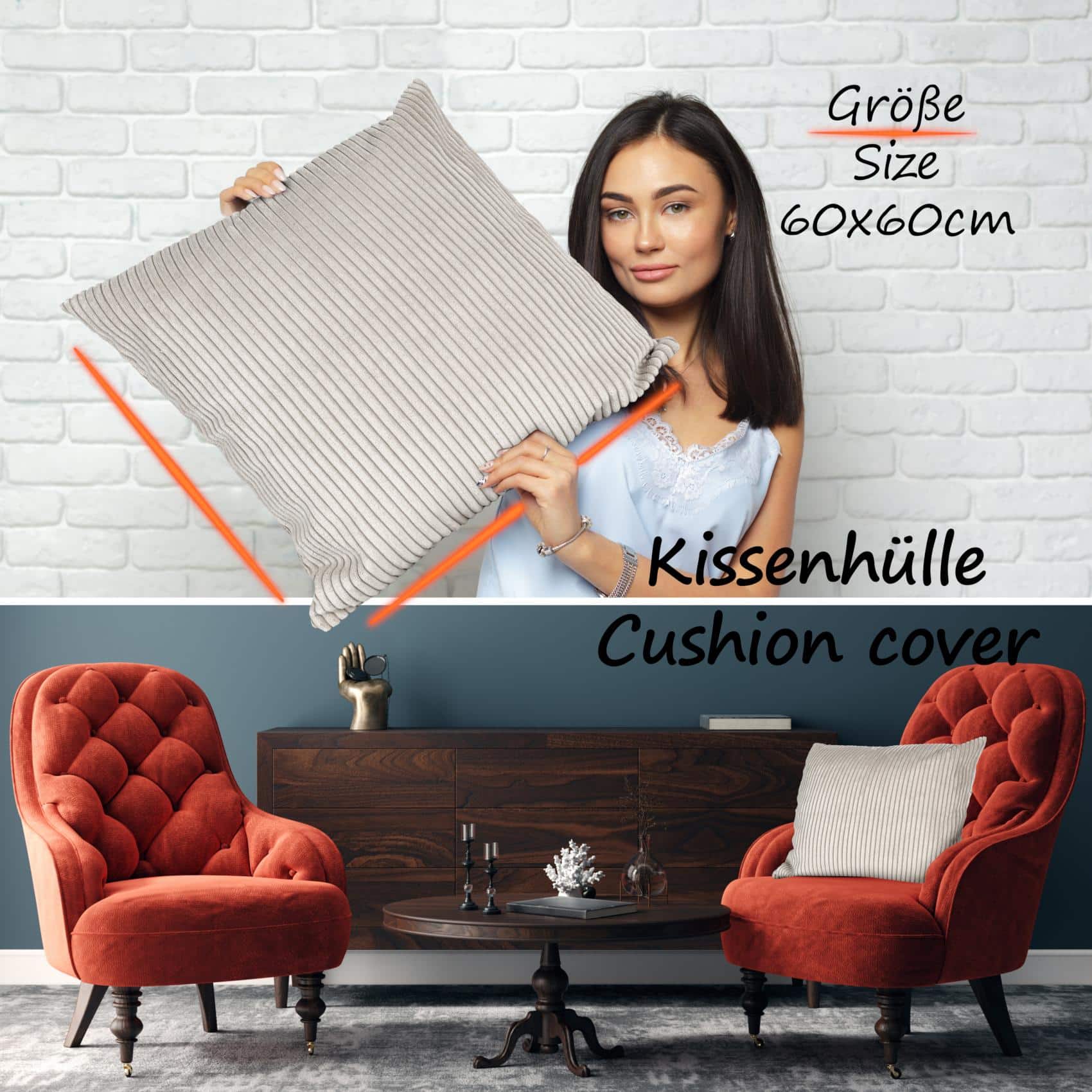Verleihen Sie Ihren Kissen mit unseren handgefertigten Cord Bezügen einen Hauch von Luxus. Diese langlebigen und weichen Kissenhüllen aus 100% Polyester sind pflegeleicht und maschinenwaschbar, in verschiedenen Größen erhältlich und perfekt für Sofakissen und Dekokissen.