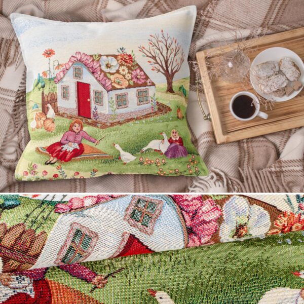 Hochwertiges Gobelin Vintage Dekokissen: Lebkuchenhaus-Motiv
