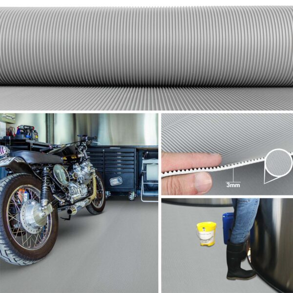 Gummimatte Gummiläufer Feinriefen Grau 3mm 100cm Breit auf TPE, Geruchslos – Bodenbelag, Bodenmatte