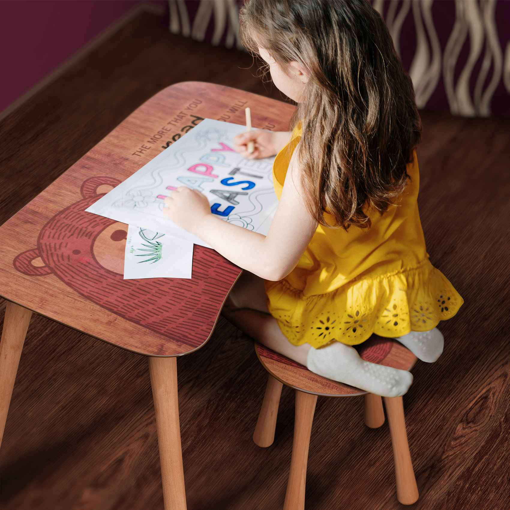 Kinder Hocker und Tisch Set mit Motiv The Bear Braun