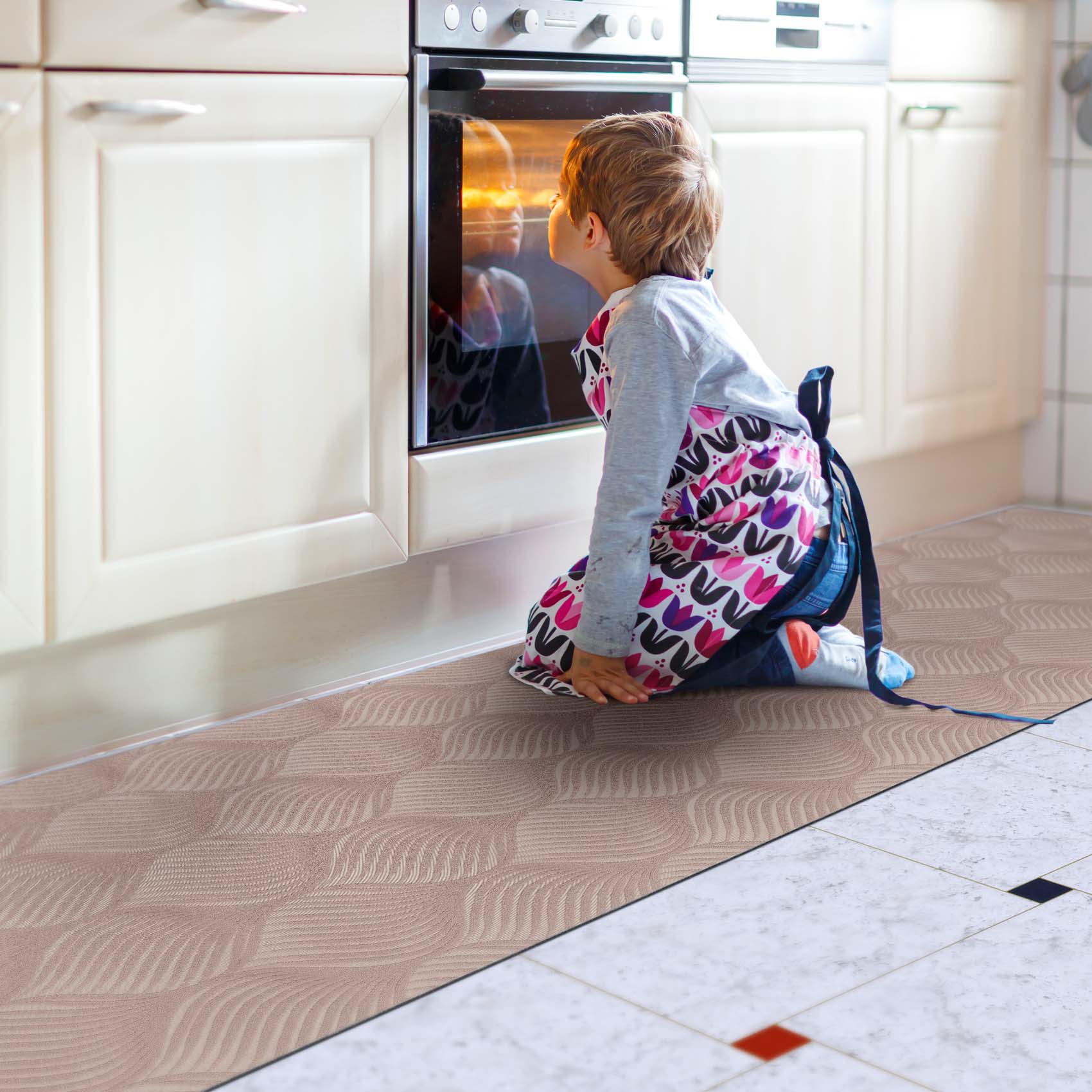 Dieser hellbraune Teppich Läufer mit den edlen Ornamenten im Zwiebelturm-Look verschönert Ihr Wohnzimmer oder Schlafzimmer. Die weiche Oberfläche aus Velours hält Ihre Füße beim Kochen in der Küche angenehm warm. Dank der rutschfesten Unterseite aus Gummi haben Sie auch auf glatten Böden festen Halt. Ein vielseitig nutzbarer Teppichläufer, der mit seinem zeitlos schönen Design zu punkten weiß! Zusätzlich überzeugt der Läufer mit seinen positiven Pflegeeigenschaften. Alltägliche Verschmutzungen können Sie mit einem Staubsauger oder einem feuchten Tuch entfernen. Dank der geringen Höhe von 3mm ist der Flurläufer auch für Saugroboter bestens geeignet. Bei Bedarf lässt sich der Flurteppich auch bei 30°C in der Waschmaschine reinigen. Dieser Küchenteppich wird Sie begeistern und Ihre Füße auf Schritt und Tritt verwöhnen!