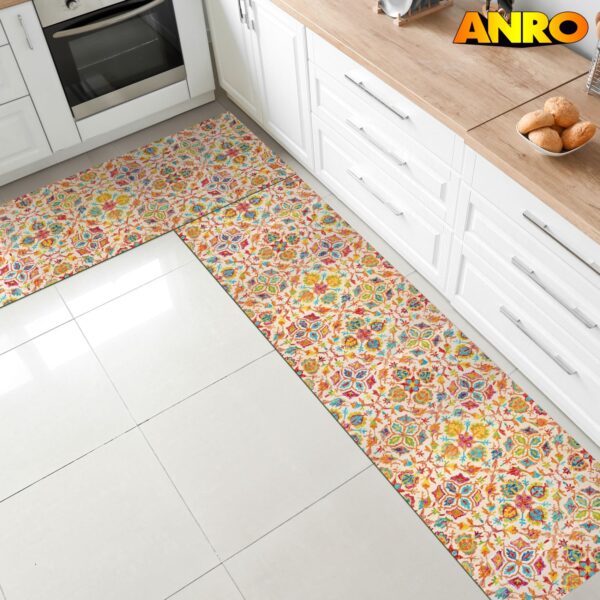 Dieser atemberaubend schöne Küchenläufer ist ein echter Hingucker und sorgt alltäglich für gute Laune. Das farbenfrohe und außergewöhnliche Motiv zaubert im Nu ein völlig neues Raumgefühl. Dabei vereint dieser Läufer ästhetische Schönheit mit bester Qualität und macht einfach überall eine gute Figur. Die Oberseite besteht aus 100% Polyester und ist schmutz- sowie fleckabweisend. Kochspritzer können einfach mit einem feuchten Tuch abgewischt werden und fertig. Zudem kann der waschbare Teppich bei 40 °C in der Waschmaschine gewaschen werden, ohne auszubleichen oder zu fransen. Dank der Unterseite aus PVC-Weichschaum ist der Küchenteppich nicht nur rutschfest, sondern auch wasserundurchlässig und antiallergisch. Ein weiteres Highlight ist die Zuschnitt-Skala in 10-cm-Schritten. So kannst Du den Teppichläufer ganz leicht mit einer Schere oder einem Teppichmesser anpassen.