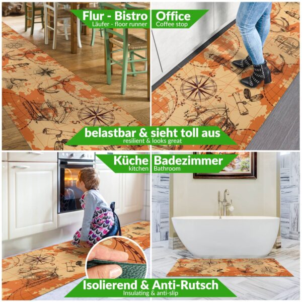 Küchenläufer waschbar Küchenteppich rutschfest Sprinty Abenteuer Braun 52cm Breite