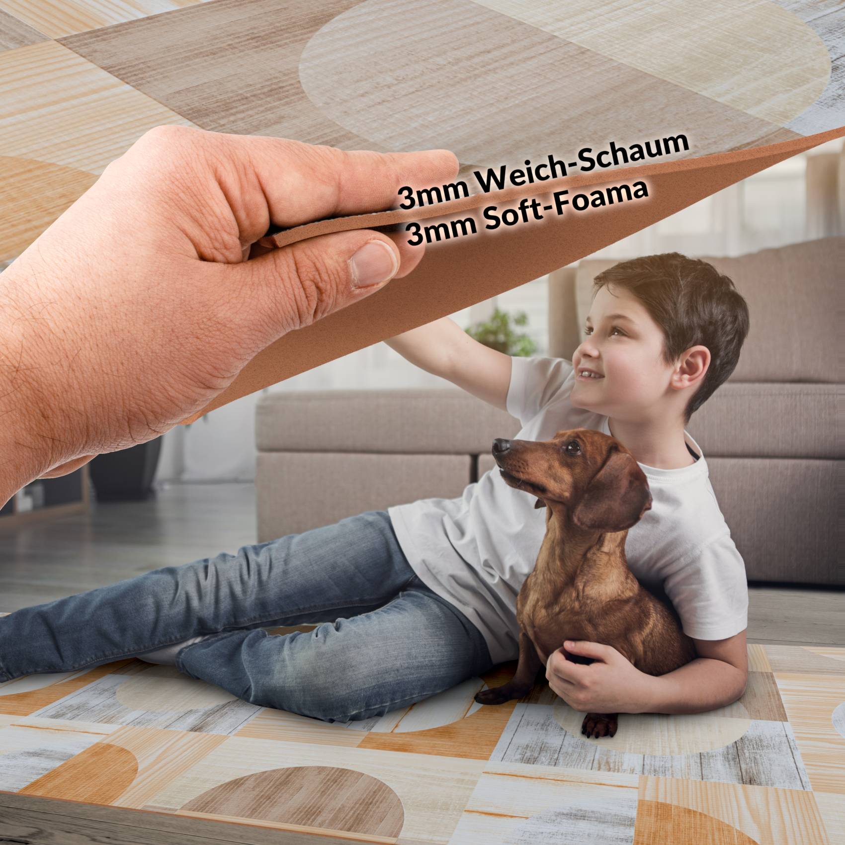 Küchenteppich Motivdruck Kreise Holzoptik Küchenläufer Läufer Küche