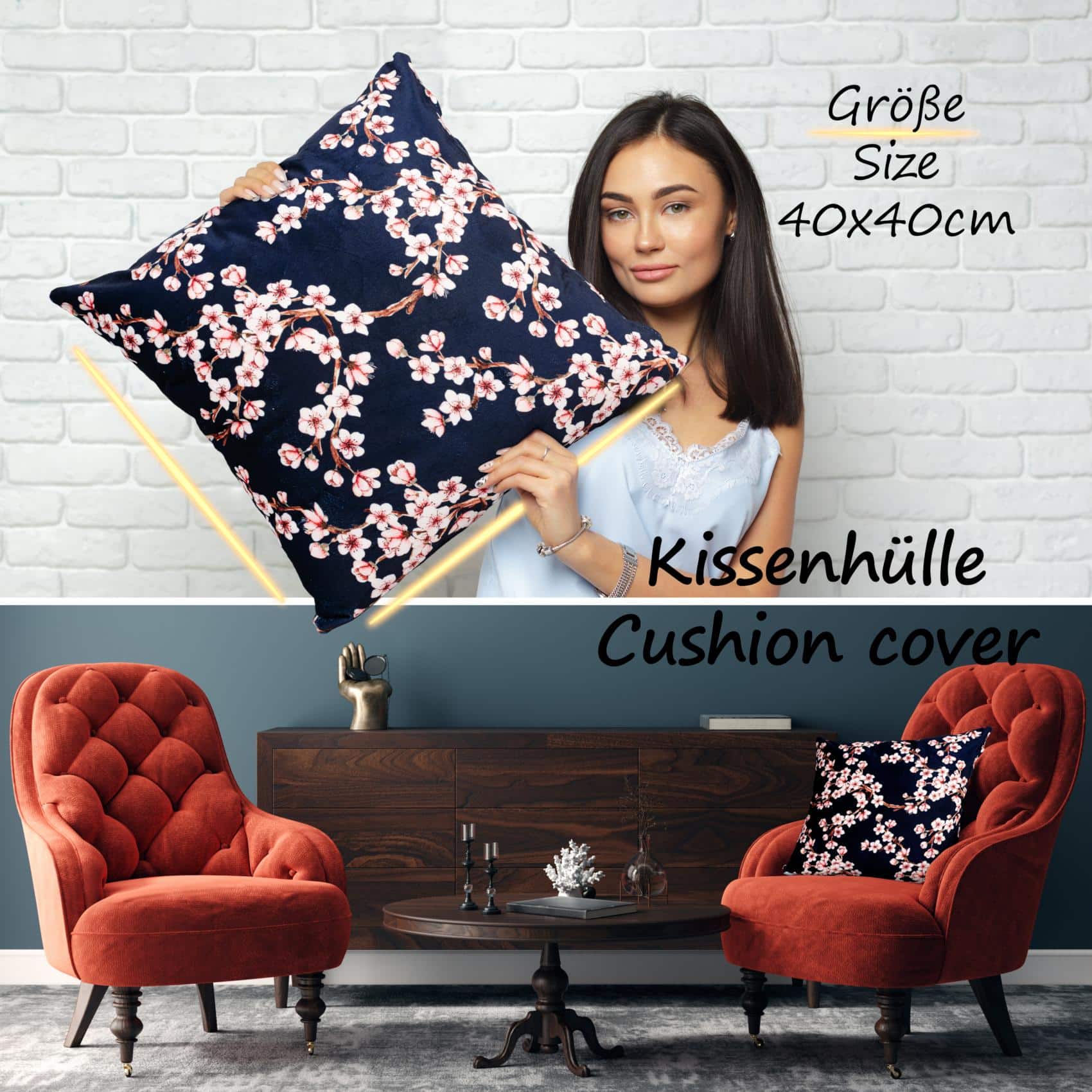 Mikrofaser Dekokissen Velours Kissenbezug Sofakissen Kissenhülle mit & ohne Füllung – Sakura Dunkelblau