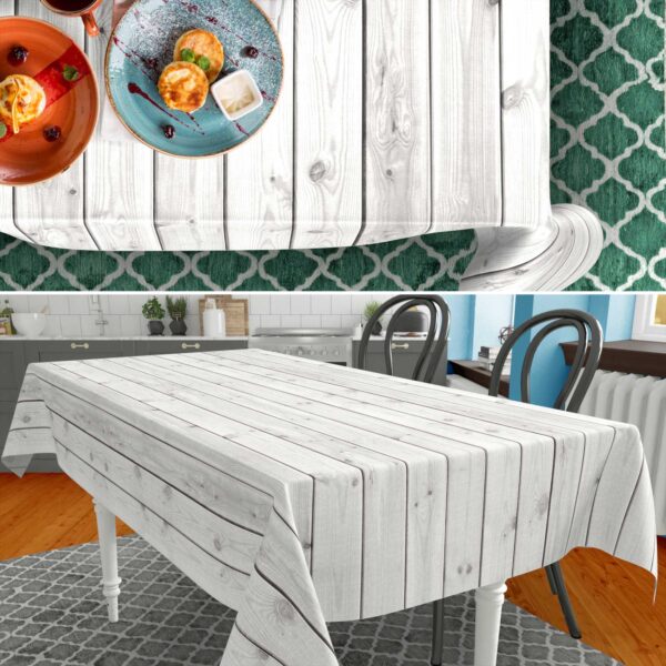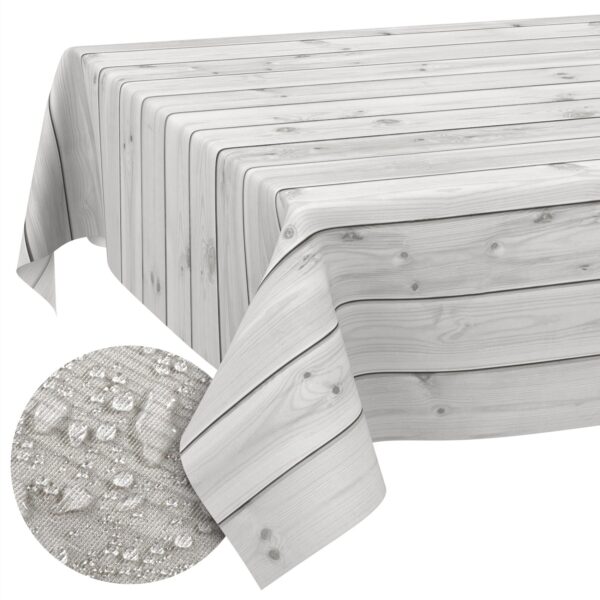 - Stoff Tischdecke abwaschbar Tischwäsche Textil Tischtuch Baumwolle Polyester Holz Grau Outdoor Tischdecke Gartentischdecke