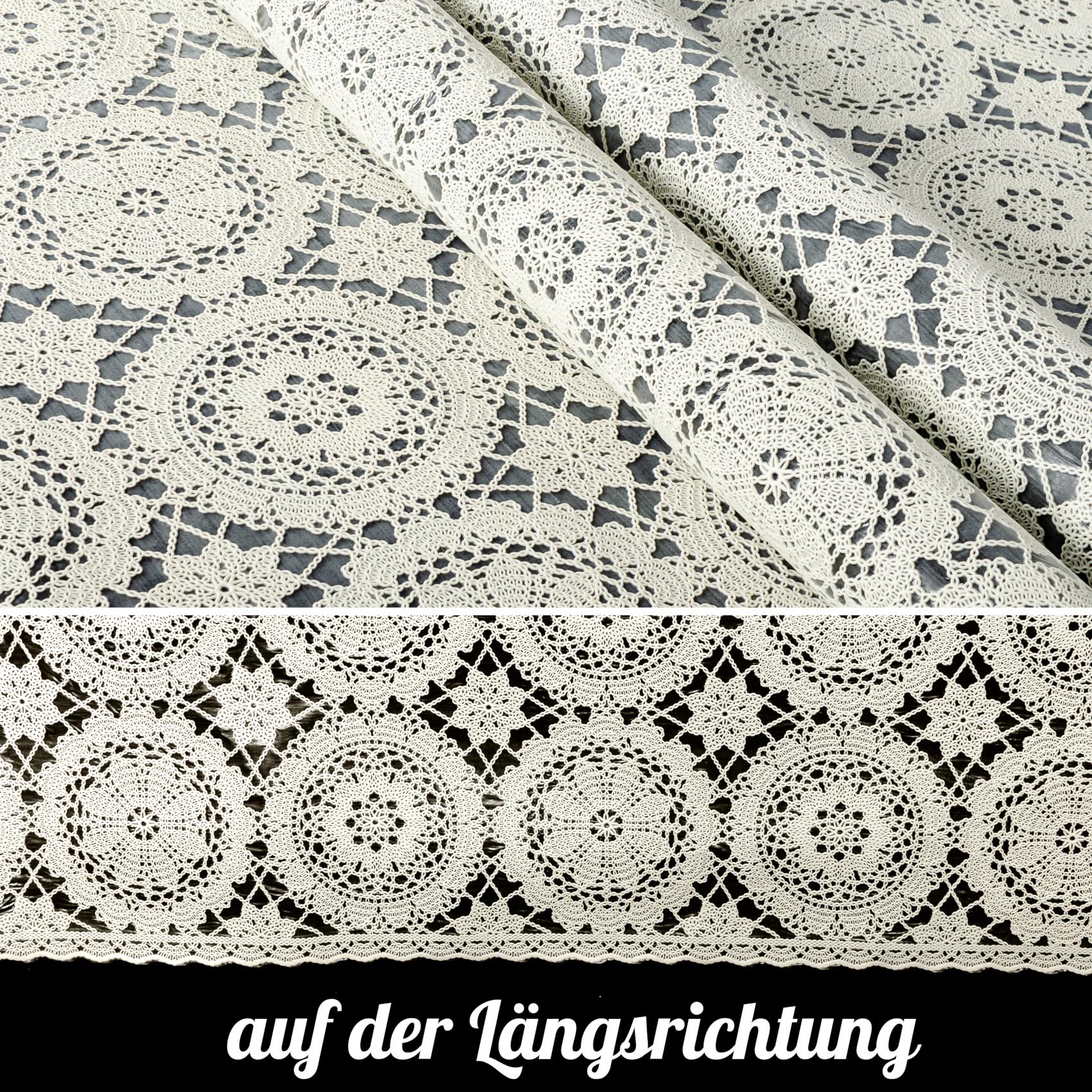 Tischdecke abwaschbar Lace Vinyl Häkel Spitze Optik Kreise Creme