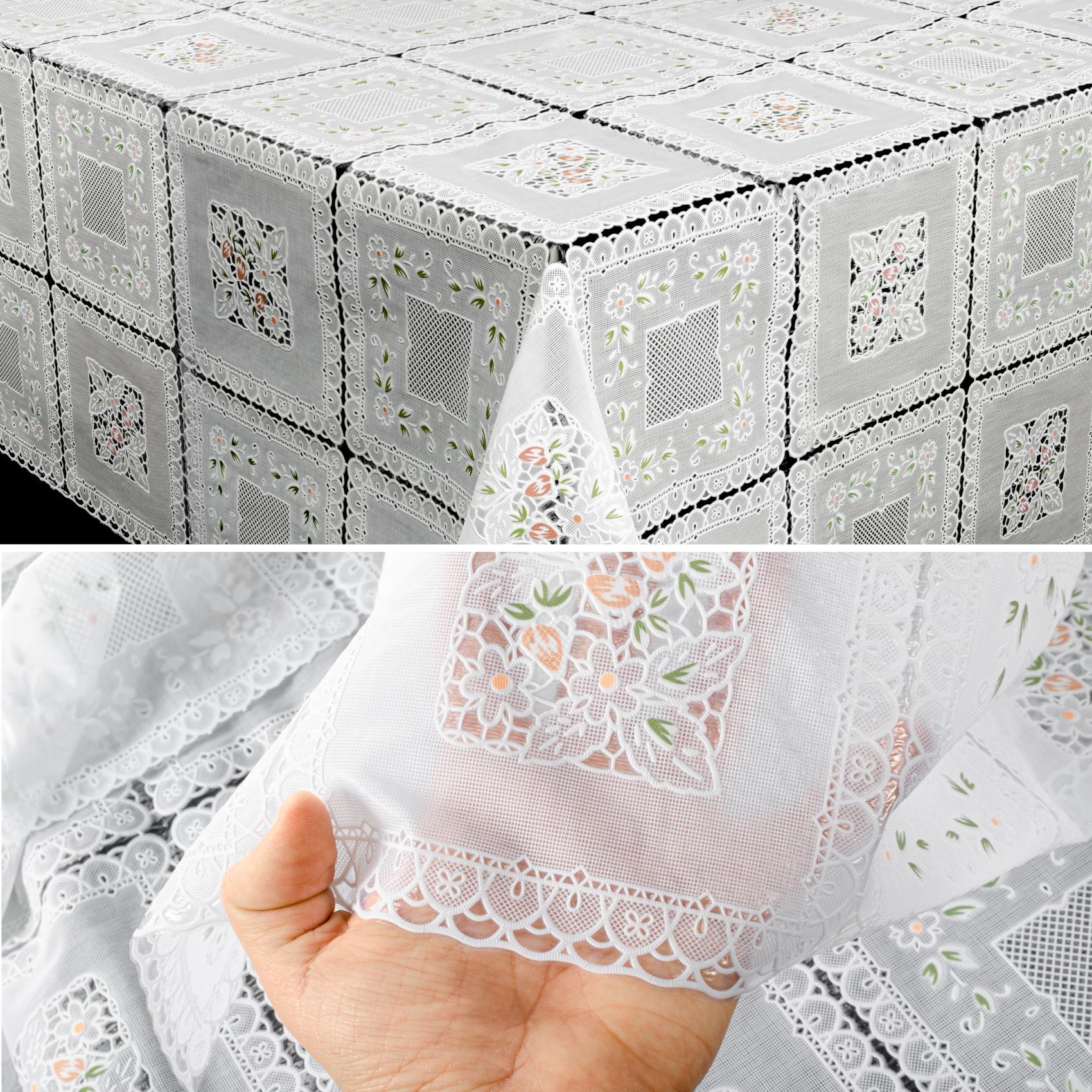 Tischdecke abwaschbar Lace Vinyl Häkel Spitze Optik Lace Bunt