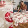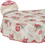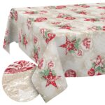 - Weihnachtstischdecke Textil Tischdecke Tischwäsche abwaschbar Tischtuch Baumwolle Polyester Stern Kugel Rot Beige