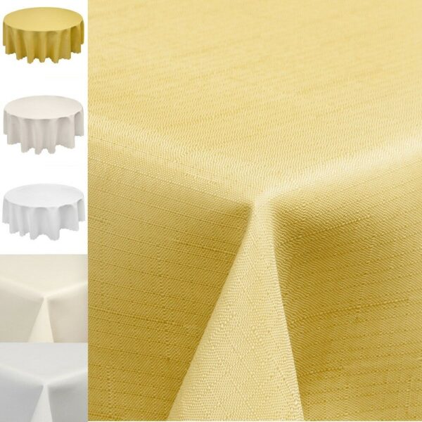 - Tischdecke abwaschbar Tischwäsche Leinenoptik in 3 Farben mit Bogenrand Gartentischdecke Polyester