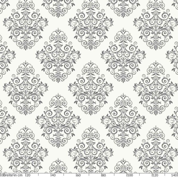 Eleganz und zeitlose Schönheit – Wachstuch mit Barock Blumen Damast-Motiv in Silber