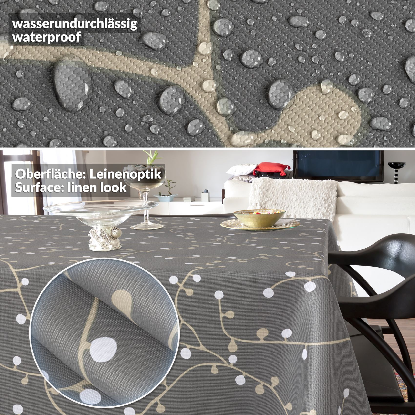 Stilvolle & abwaschbare Wachstuch Tischdecke ELENA